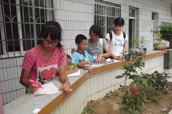 小朋友认真画画