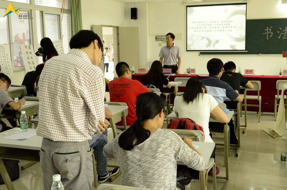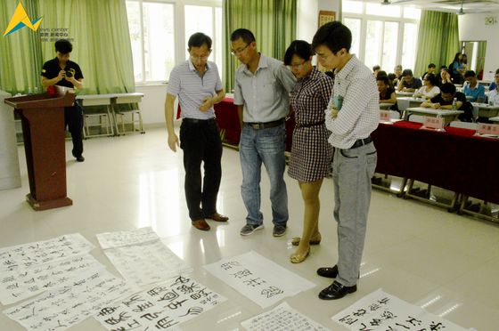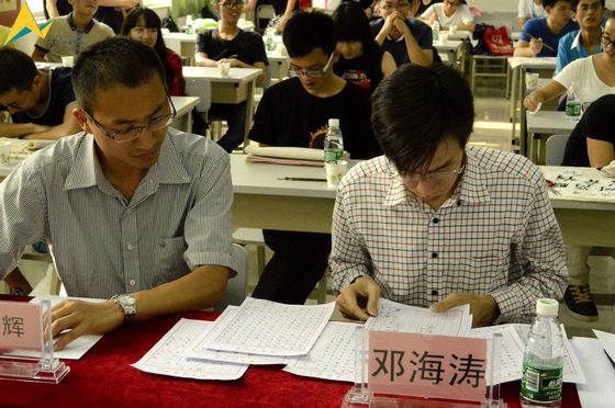 在邓思清同志致开幕词以后,比赛正式开始。本次比赛不限主题、字体,给了选手们充分的发挥空间。他们用楷书、行书、篆书、隶书等书法向我们展示了作品字里行间的种种魅力。安静的课室中,笔锋与纸张间的摩擦的声音显得格外悦耳。参赛选手用心书写每一笔一画,尽其所能地展现自身的书法才能。在评委们观看参赛选手的创作过程时,观众也在默默地为他们加油打气。在评委认真评判作品时,观众抢答环节将现场气氛推向了高潮,主持人提出的问题囊括书法、文史等方面。最后由邓海涛老师为比赛作品做点评,他认为写字亦如做人,书法是需要我们去认真研究每种笔法的。在软笔书法比拼中,选手邓苑荣获桂冠,二等奖为谭天来、龙星余,三等奖是林龙、尚高、蔡鹏伟。而获得硬笔比赛一等奖的是曾亮。浪live