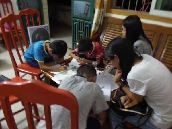 第一天晚上便开始分小组进行两个小时的义教,每个小组被分配到不同的家庭,实践期间每天晚上都要进行义教,义教意在培养孩子们的学习兴趣,同时也对农村教育进行调查了解,尤其是对农村留守儿童进行关爱和教育。义教结束后,同学们开会进行小结,提出在义教过程中遇到的问题并讨论解决方法。