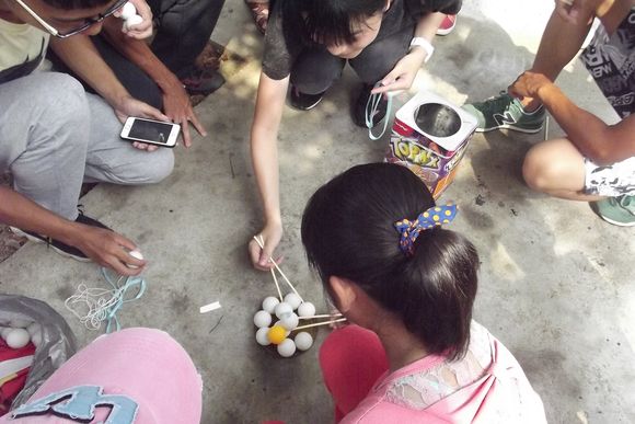 7月16日上午,珊瑚村小分队的同学们在村委办公楼旁的操场上为村里的小朋友举办了一场别开生面的游园会。游园会分为表演环节以及游戏环节:表演环节中同学们为小朋友表演了巧串花绳、魔术以及唱歌,很好地吸引了小朋友的注意力,让他们在游戏环节前得到热身;游戏环节的小游戏有夹乒乓球、摸鼻子和你比我猜,这三个游戏按顺序进行。进行第一个游戏时小朋友们表现得比较内敛,不敢参与活动。经过同学们的鼓励,小朋友们都慢慢地融入到游园会中,之后的两个游戏都进行得十分顺利,越来越多的小朋友加入到游园活动中来。小朋友和同学们一起玩耍,并收到了同学们预先准备的礼物,游园会在一片欢笑声中结束。
