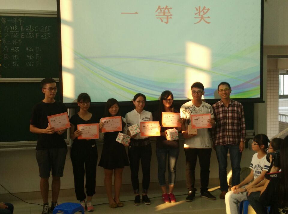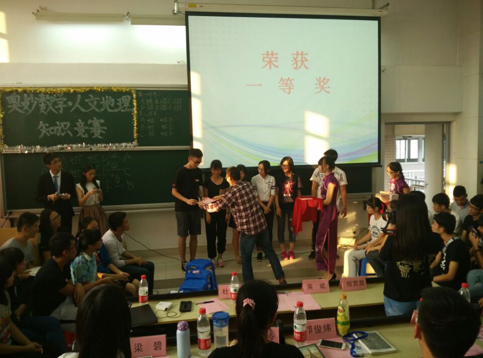 经过三个环节的智慧碰撞,获奖的队伍也随之产生。“工藤C一”荣获一等奖,“F6”队荣获二等奖,“打败其他队”获得三等奖。在观众雷鸣般的掌声中,第十一届学术科技节之“奥妙数学·人文地理”知识竞赛也完美落幕。
