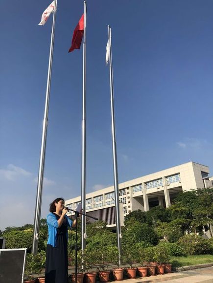 2017-2018学年第二学期升旗仪式于5月28日上午7:30在升旗台举行,参加本次升旗仪式的领导有党委副书记孙凌老师、学工办主任张昭老师、团委书记兼14级辅导员胡啟岚老师,团委副书记兼16级辅导员何燕惠老师以及数院15,16,17级的全体同学。