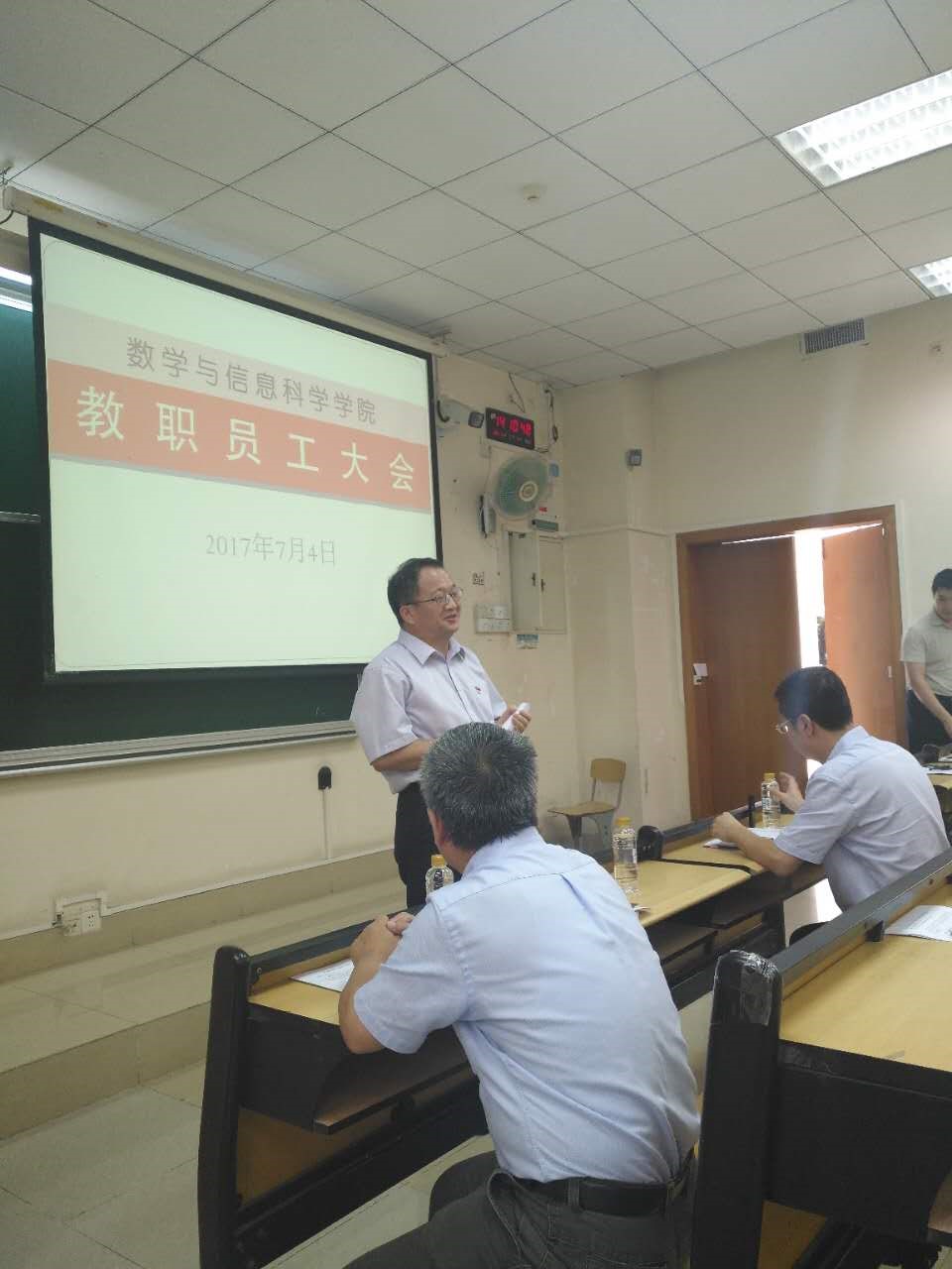在文清楼120室召开全院教职工大会,校党委屈哨兵书记、组织部秦春部长出席会议,大会由学院党委书记黄志凯同志主持。