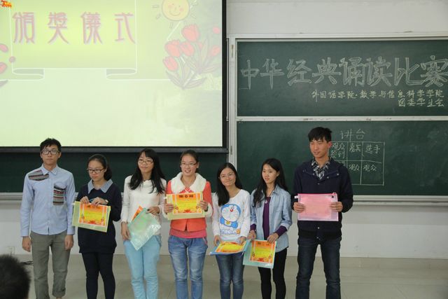 2013年12月3日下午,在理南510数院与外国语学院的师生共同享受了一场文化大餐——“中华经典朗诵比赛”。数院13级辅导员兼团委书记杜亚辉老师作为特邀嘉宾出席了本次比赛。