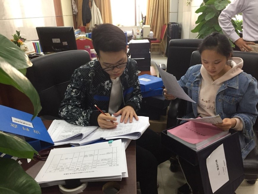 图2:服务队的同学在帮忙做资料登记和书据核查