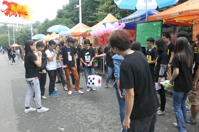 特色。此次活动内设有18个摊位,包括数学文化宣传摊位、抽奖及游戏礼品兑换摊位以及其他游戏摊位。各有各的特色,各有各的精彩。许多经过红棉路的学生被这场盛大的派对所吸引了,一个接一个地“光顾”摊位,去俘获他们的战利品,直到把他们手中那张灰白的信纸盖了满满的红色印章。