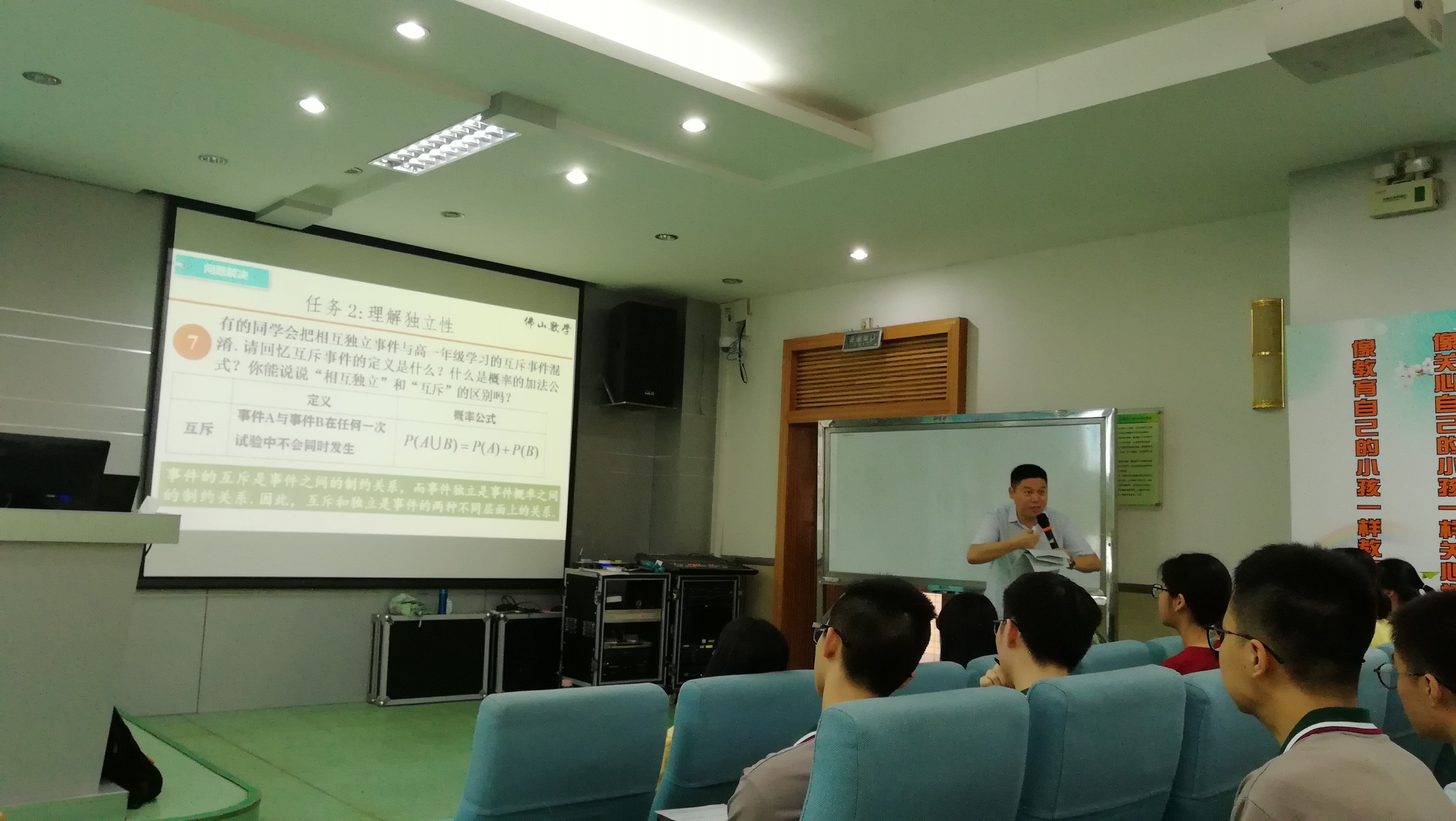 “基于核心素养的概率单元主题教学”研讨会以一线教师、中学教研员、大学教授同课异构的方式,以概率单元教学中“事件的相互独立性”为主题,分别为与会师生展现了不同的课堂内容。参与同课异构的授课教师分别为石门中学代表教师李锦万老师、佛山市教研室彭海燕副主任、浪live