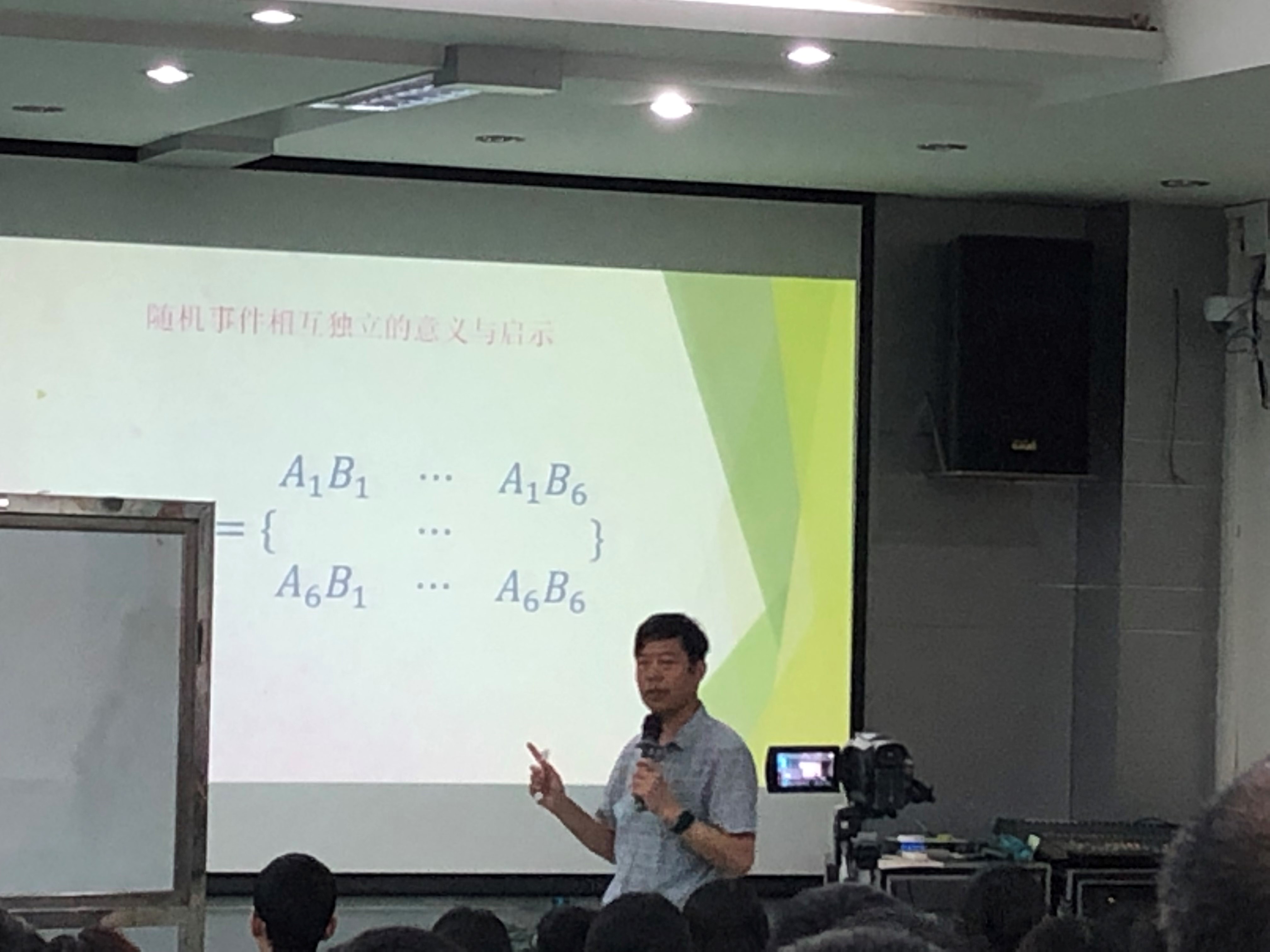 三位教师的课结束以后,针对一线教师在概率教学中的疑惑,曹广福教授一一释疑,并于下午继续以概率为主题,开展“从赌场走向数学殿堂的概率论”的专题报告。曹老师通过分析教材,为中学概率教学提供了一些教学策略。