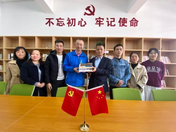 实习基地的培养未来教师功能,钟育彬副院长代表数学学院向铁外小进行捐赠数学教育类书籍一批,以更好地提升实习生的数学教学理论水平和专业素养。最后,梅杰校长非常感谢钟院长和各位老师的到来,同时也期待有更深入的合作交流,希望实习基地能够为实习生的成长提供更好的平台,也希望每位实习生在铁外小都能够实实在在地有所成长。