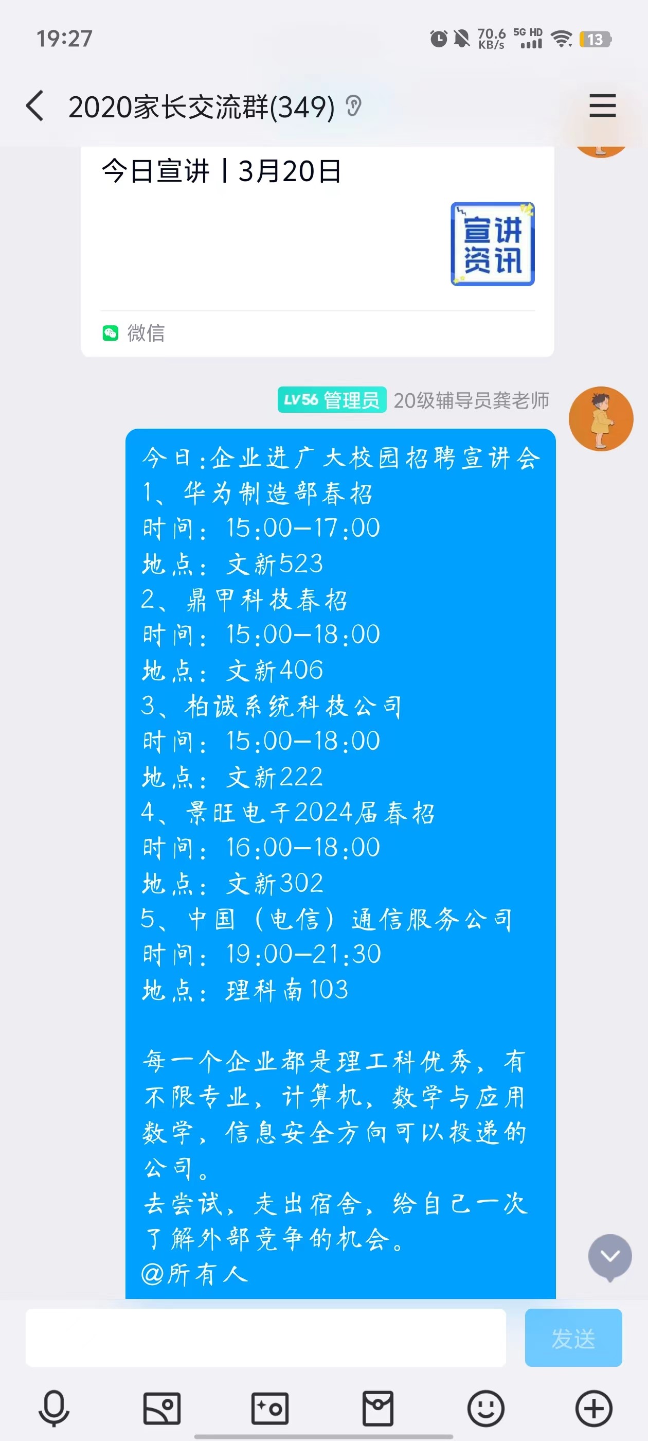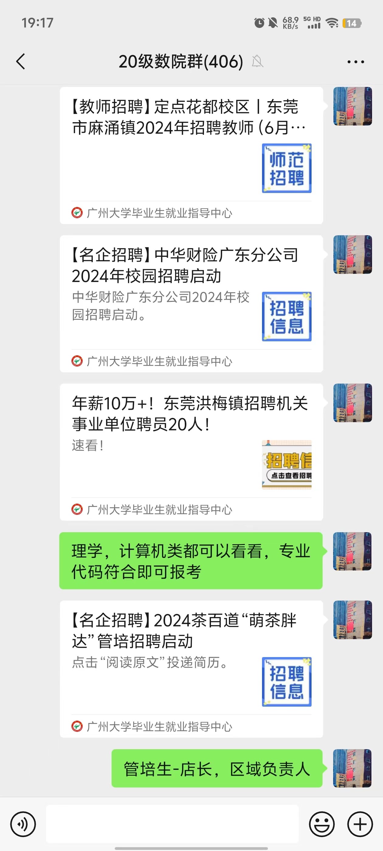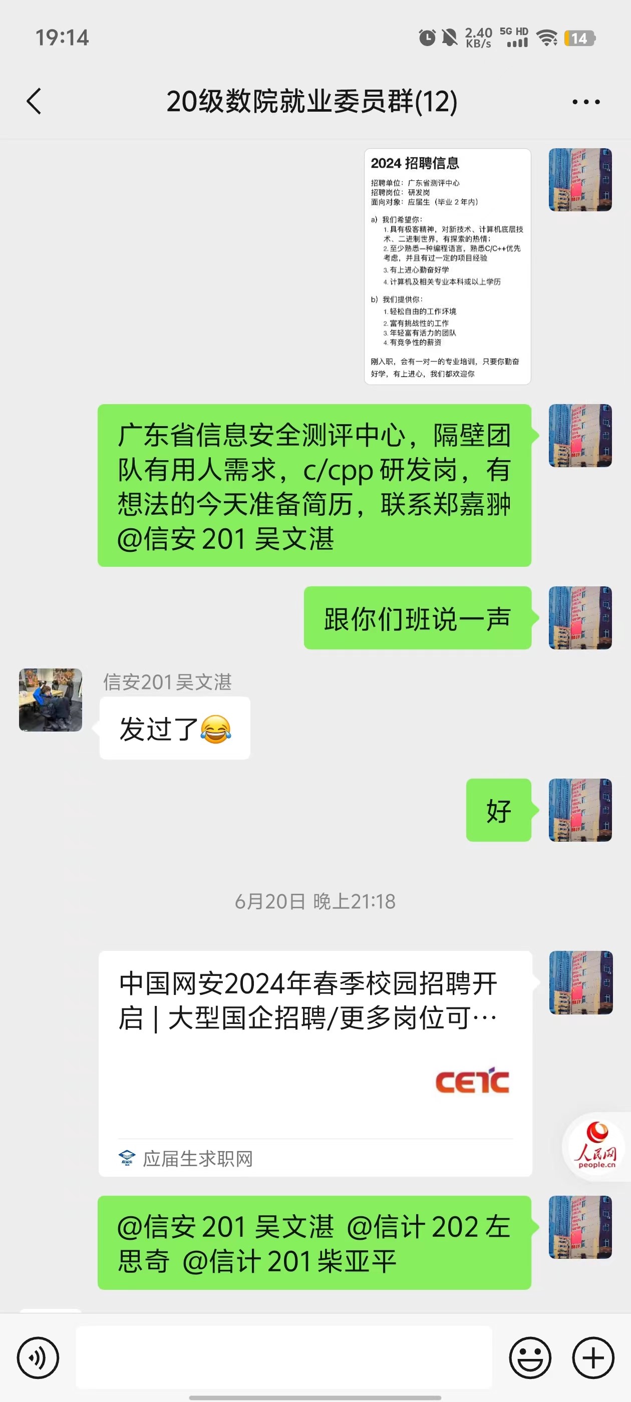 学院还实施了包括在年级就业委员群、家长群、班主任群、校友群内推等多渠道进行就业动员和系列就业帮扶措施,为毕业生提供更多就业机会和资源。这些措施的落地执行,拓宽了毕业生的就业信息渠道,有效地帮助毕业生顺利实现高质量就业。