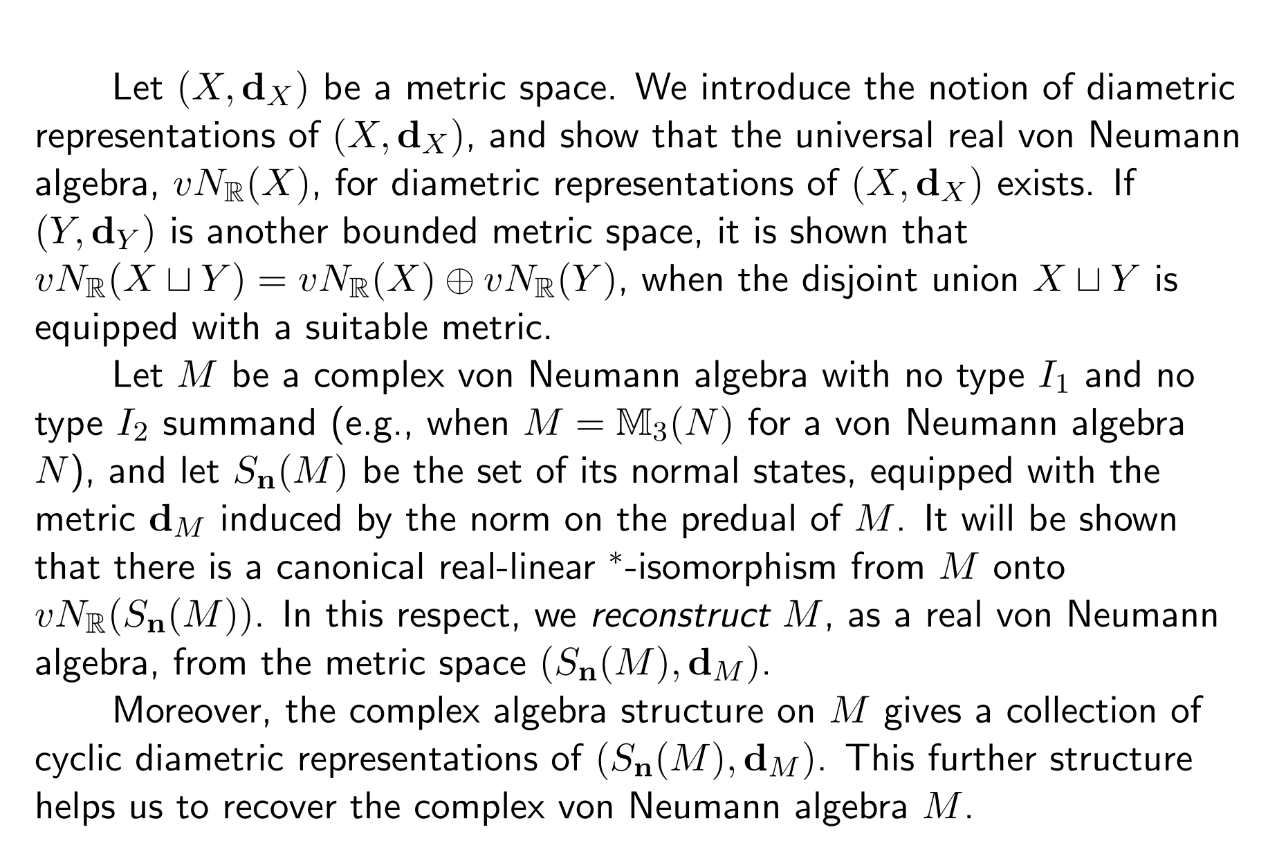 题目:Reconstruction of a von Neumann algebra from a metric space