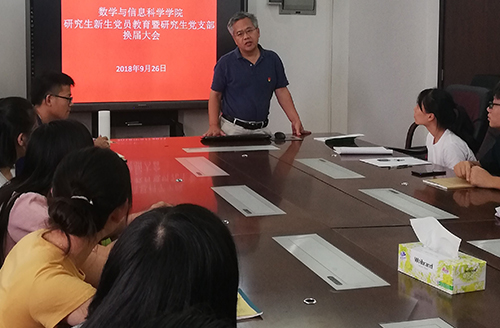 新时代 新要求——加强研究生党员思想教育暨新支部成立换届2018年9月26日,浪live 在行政西前334会议室召开2018级研究生新生党员教育暨研究生党支部换届大会,参加会议的有院长曹道民教授、副院长王晓峰副教授、党委副书…